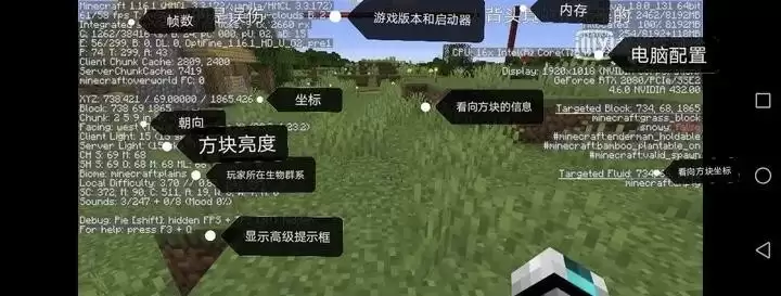 F3键专门用于显示游戏参数,更多参数说明请参考下图
