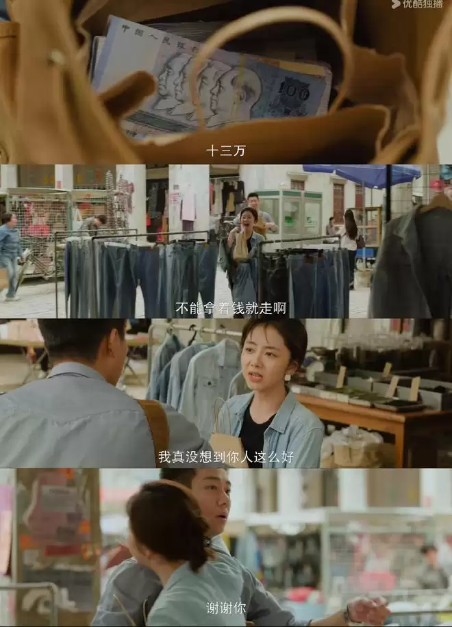 做护工认识的老板借钱给她,萍水相逢、不打不相识的高翔帮她借13万,批发档口的大哥也愿意全部接手她的服装,女主创业全靠缘分和美貌,如此悬浮做作的剧情实在让人失望!