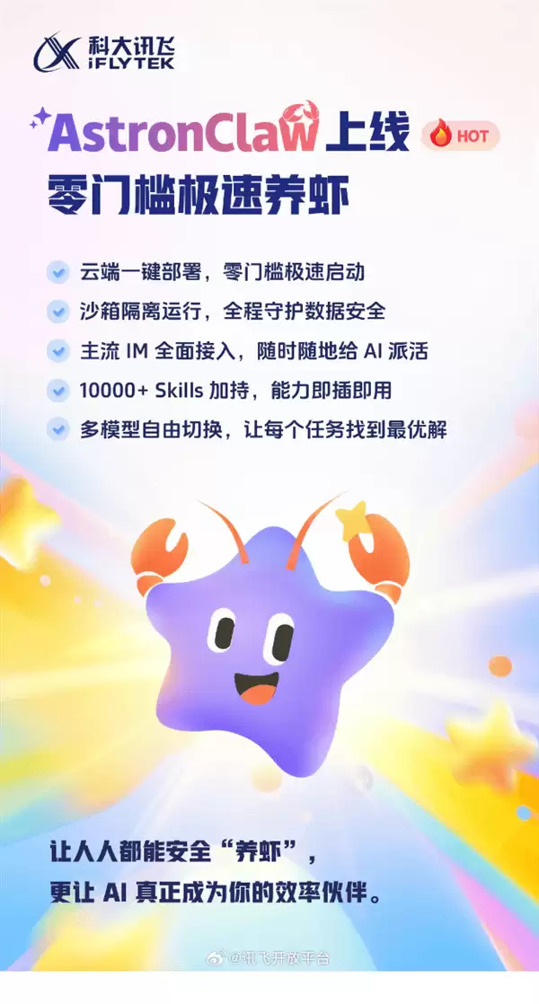 科大讯飞AstronClaw上线:云部署多模型切换助力高效办公