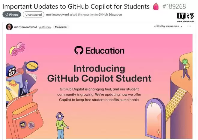 IT之家3月13日消息,微软GitHub于3月12日宣布,将调整人工智能编程助手GitHub Copilot的免费学生套餐政策。