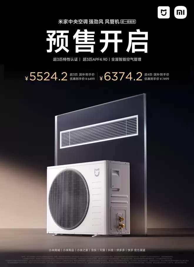 小米米家中央空调风管机发布:强风系列5542.2元起