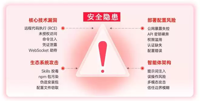根据已公开信息,目前OpenClaw暴露的安全隐患来源于以下四大方面: