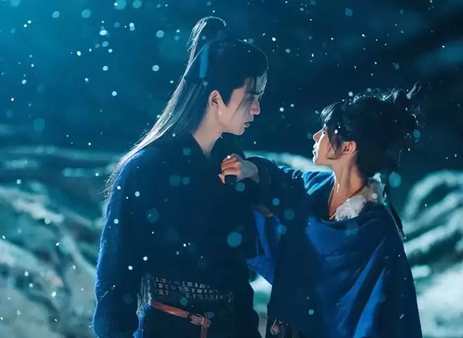 同样是男主跌倒在地的镜头,《逐玉》中拍出的画面是谢征重伤摇摇欲坠,像是他身边被风雪吹动的蒲草,在失去意识后坠下山崖。