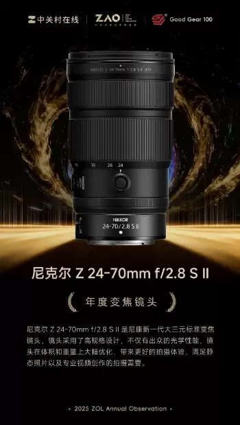 镜头产品作为影像创作的核心装备,尼康Z卡口光学产品2025年依旧表现亮眼,多款镜头在行业年度器材推荐榜单中崭露头角。尼克尔 Z 24-70mm f/2.8 S Ⅱ作为尼康2025年度重磅推出的大三元镜头力作,凭借创新内变焦设计,实现实用性与光学性能的兼顾,成为年度器材榜单 “座上宾”。