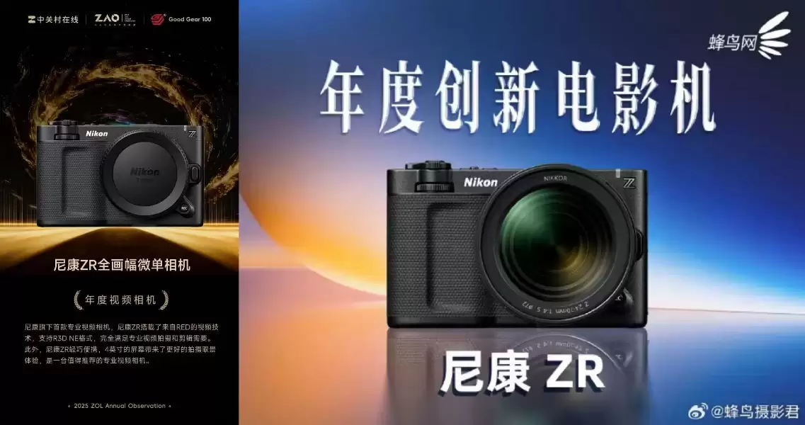 在视频与专业创作领域,尼康ZR获得蜂鸟网“年度创新电影机”、热点科技“年度编辑推荐奖”、科技视讯“年度最佳电影机奖”、佳友在线“年度最佳全画幅视频机”等认可。作为尼康面向高规格视频创作打造的专业机型,ZR集成先进影像处理能力与完善的视频功能配置,兼顾画质表现与系统稳定性,在多个媒体年度榜单中的持续入选。