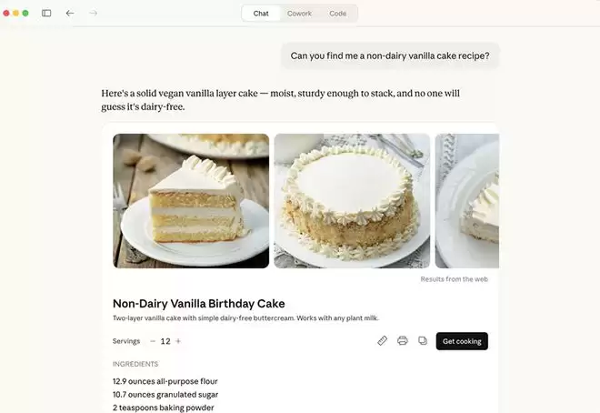 今年早些时候,Claude开始针对某些主题使用专门设计的格式,例如食谱现在会显示食材和步骤,被问天气时,Claude也会提供可视化效果。