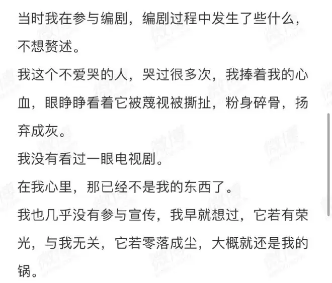 原著作者天下归元在参与编剧的过程中经历了各种不愉快,眼睁睁看着自己的心血被蔑视,最后在拍摄期间被迫退出了编剧团队,留下一句:“我也几乎没有参与宣传,我早就想过,它若有荣光,与我无关,它若零落成尘,大概就还是我的锅。”