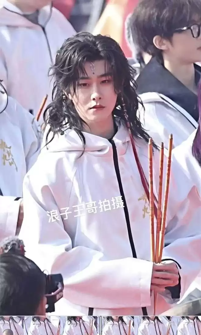 开机现场,田嘉瑞以一头突破以往的野性长卷发造型亮相,穿着剧组统一的服装,开开心心地点香、切蛋糕、和大伙儿合影,还带着小狗坐下来和大家聊天。