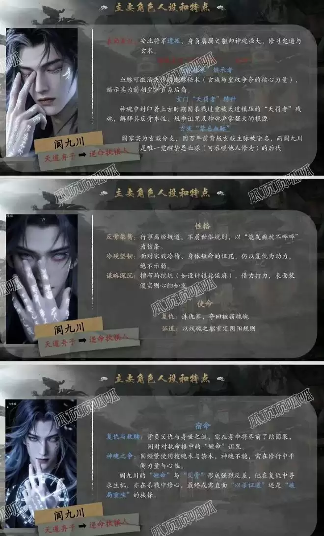 基本就是翻版的云九川,都是神魂不全开局,都是在类似乱葬岗的地方醒来,都只余一口凉气,都有白虎精魂契约共生,都有叫宫七的盟友,都顶着“反骨”人设,都是那种表面看着弱不禁风实则狠人一个的设定。