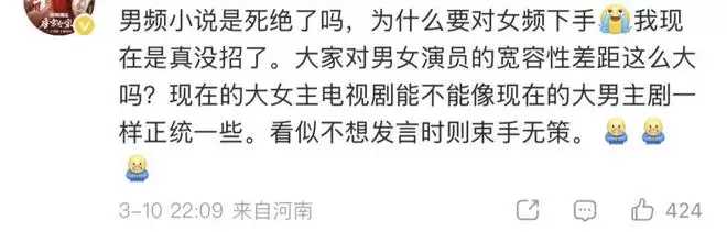 或许,正如有评论所说,“所谓强者的特权,就是可以无需对弱者展开想象力”。当掌握话语权的一方习惯了“男主视角=市场主流”的思维定式,他们就真的想象不到,女性观众想看的,恰恰是那个在逆境中挣扎生长的“她”,而不是披着女主外衣、演着男主戏份的“他”。