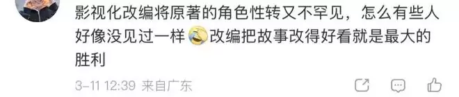 当然,本质上,这两件事指向的,是同一个问题:女性叙事在影视化过程中,总是那个被牺牲的选项。但把大女主性转成男生这种操作,离谱程度已经超出了“魔改”的范畴,进入了“跨性别创作”的新赛道。