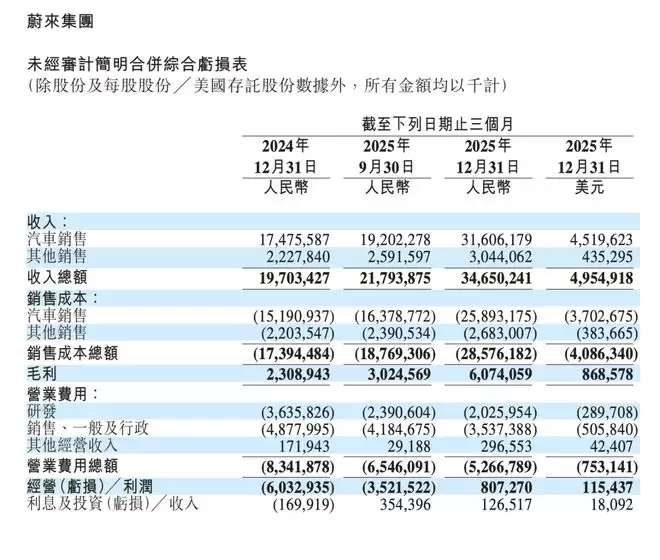 2025年3月,李斌立下当年第四季度实现盈利军令状的消息被广泛传播。彼时蔚来深陷巨额亏损,市场质疑之声不断。2026年3月10日,蔚来最新财报数据给出了答案。