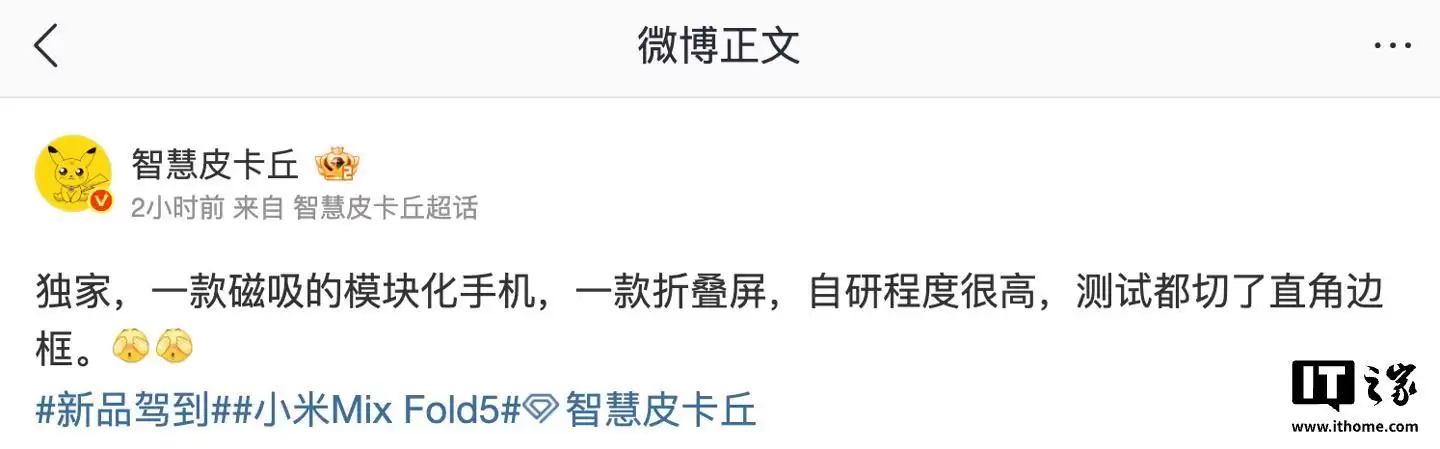 IT之家3月13日消息,博主@智慧皮卡丘今日在微博透露,某厂商的磁吸模块化手机及折叠屏新机自主研发程度相当高。