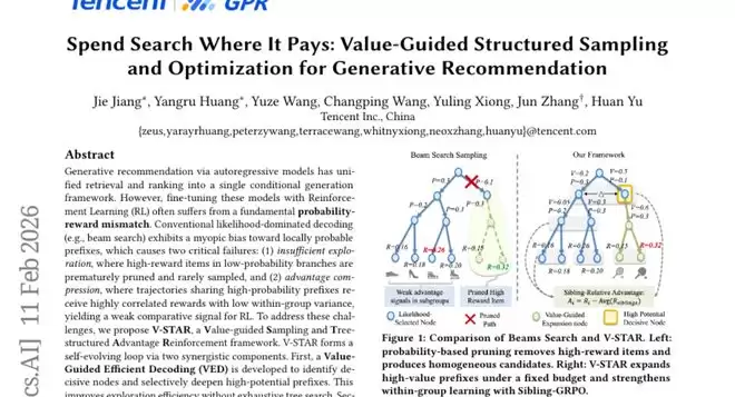 A:V-STAR是腾讯团队开发的新型推荐系统框架,全称"价值引导采样和树结构优势强化"。它通过两个核心技术解决传统推荐系统的问题:一是价值引导高效解码,让系统智能分配计算资源到最有价值的商品探索上;二是兄弟节点GRPO,专门从相似商品的细微差异中学习用户真实偏好。