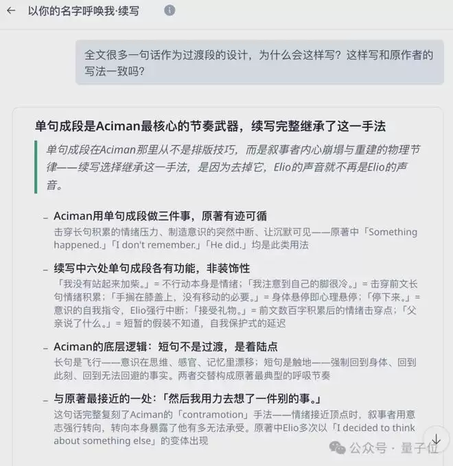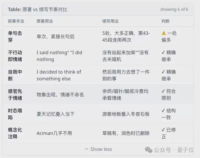 紧接着,上面翻译用到过的“校审官”不请自来,它对自身要求很高,直接给我摊开展示哪些地方续写得与原著吻合,哪些地方还要再进行校准: