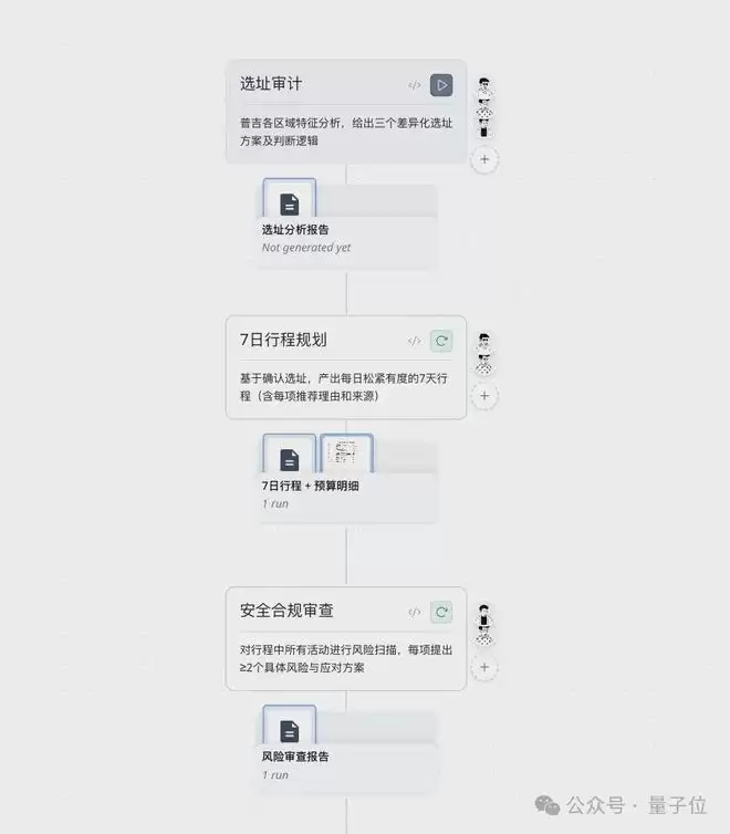 任务会被拆解成具有先后关系的节点:谁负责搜索、谁负责整理、谁负责校对,以及在哪些关键节点需要回到用户进行确认。