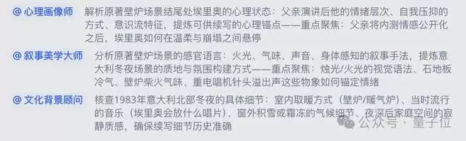 紧接着系统自动将这个任务拆解成这么几步,包括风格研究、续写创作、润色校准,曾经在其他任务里调教过的AI专家们,又齐聚一堂了: