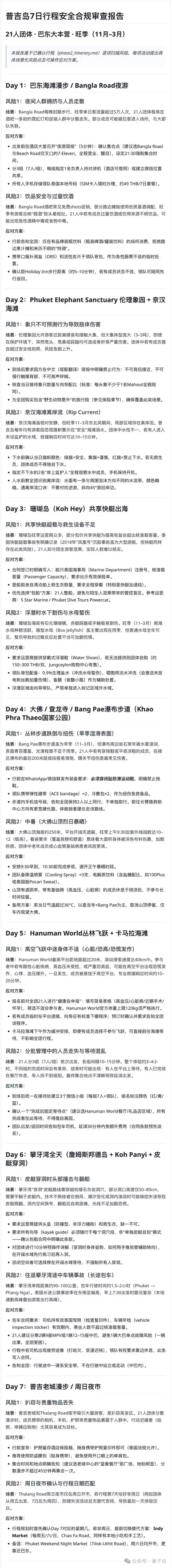 想要点名表扬的还有我的“安全合规官”,它为我出具了一份七日行程里可能涉及的潜在风险: