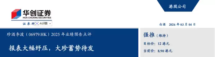近日,华创证券发布了一篇题为《报表压力有所缓解,大单品“大珍”蓄势待发》的研究报告,深入剖析了珍酒李渡2025年业绩预告以及公司未来的战略布局。该研报指出,公司正积极优化渠道库存,为2026年实现良性增长打下坚实基础。其中,核心战略大单品“大珍”凭借创新的万商联盟模式,成为公司应对行业调整、构筑未来增长引擎的关键抓手,因此华创证券维持对其的“强推”评级。