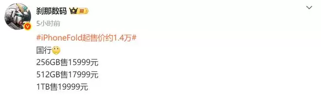 因为近期有博主曝光了iPhone Fold国行售价,直接15999元起步,顶配19999元,这个价格比华为Mate X7贵3000,比三星Z Fold 7贵2000。