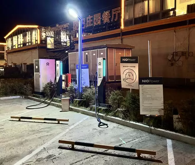 西藏县城里的蔚来自营充电桩 刺猬公社拍摄