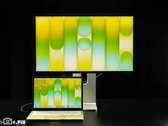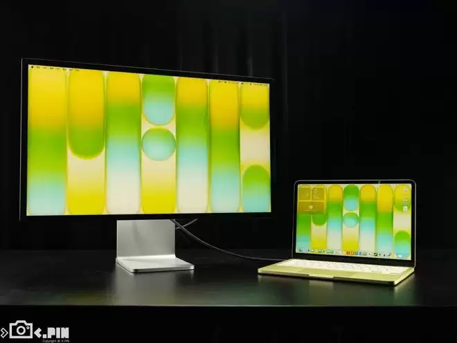 所以苹果的逻辑其实是 —— 入门用户通常只在电脑上接两种东西:U 盘和显示器,而这台电脑的 USB 3.0 其实支持 DP1.4 输出,我们试了下外接显示器,4K 60Hz HDR 完全没问题。