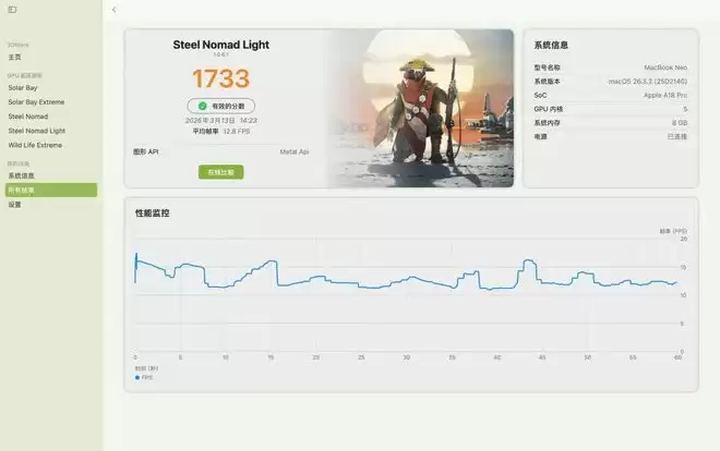 至于性能,很多人看到 MacBook Neo 用的是 A18 Pro,是 iPhone 16 Pro 同款( 但 GPU 阉割了一个核心 ),第一反应基本都是:笔记本用手机芯片?但你别说,这事其实还挺苹果。