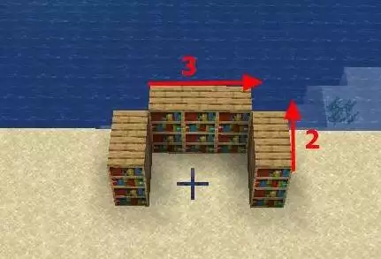 第五步,将附魔台放置在之前摆放好的书架群正中央。
