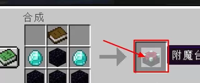 第四步,再次打开工作台,按照图示顺序摆放材料来合成一个附魔台。