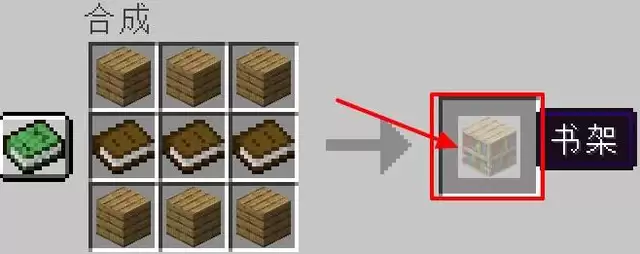 接下来,用三本魔法书摆放在合成格正中间,其余位置放上木板来合成书架。