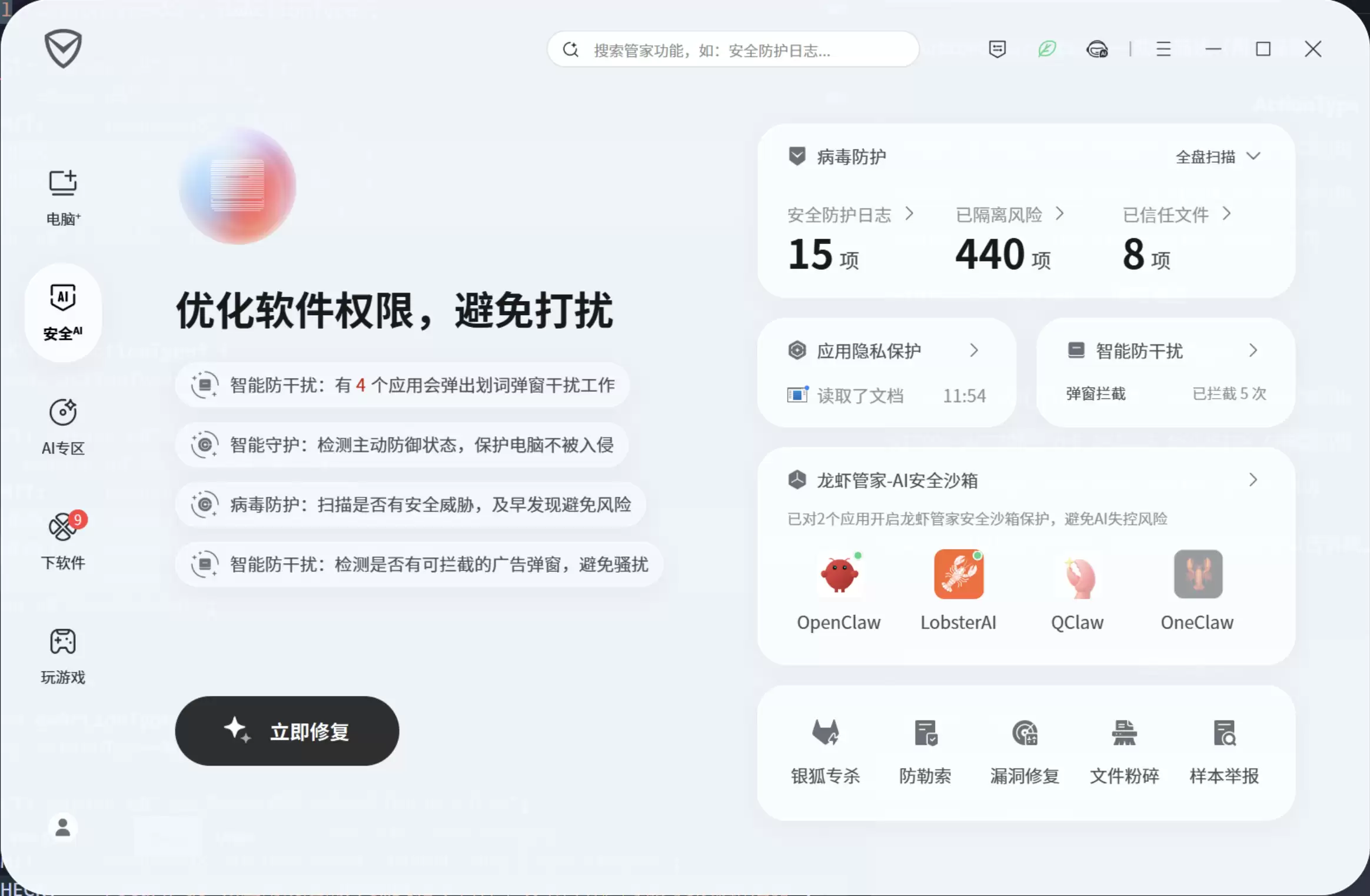 腾讯电脑管家首发“龙虾管家”功能,优化电脑性能