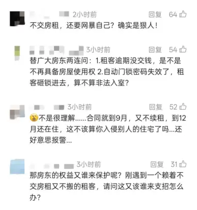李星进一步指出,门锁是房东的合法财产,租客破坏门锁属于违法行为,且可能涉嫌侵占他人财产。警方可依据《治安管理处罚法》相关条款对行为人进行治安处罚,平台方亦可依据《民法典》中关于侵权责任和财产损失赔偿的规定,向违法行为人追索民事赔偿。