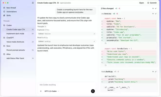 2月2日,Codex桌面App发布(macOS),OpenAI同时宣布向ChatGPT免费和Go用户开放Codex,所有付费用户的速率限制翻倍。