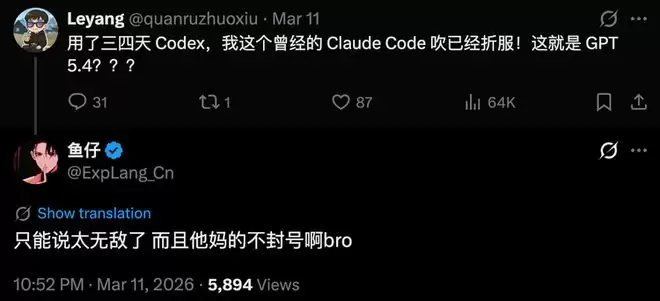 与此同时,Codex在程序员群体中的热度和口碑也在肉眼可见地上升。