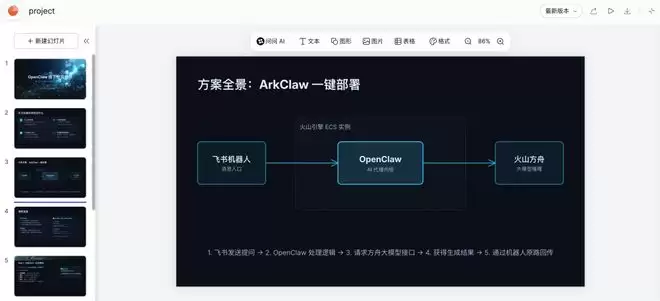 因为前面接入了 Anygen,ArkClaw 制作 PPT 的能力就非常强了。
