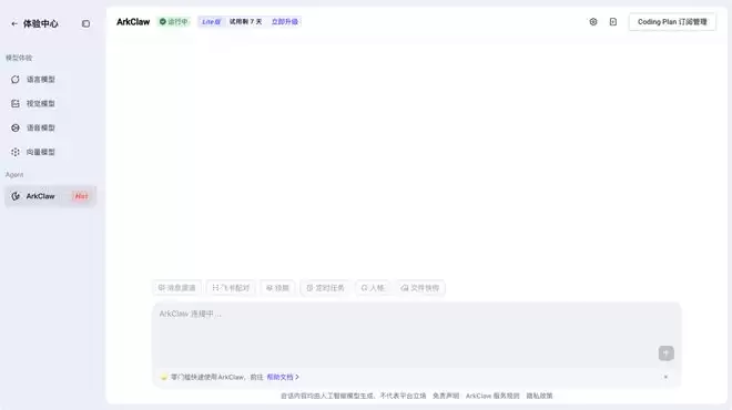 ArkClaw 主界面截图|图片来源:ArkClaw