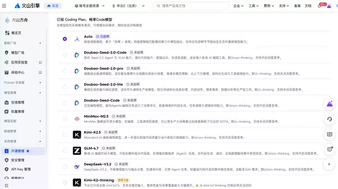 ArkClaw 背靠火山引擎的大模型体系,可以使用非常多的模型。