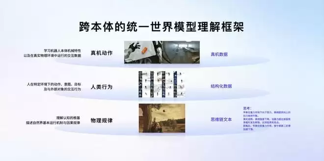 得益于原生架构的优势,该模型不再依赖昂贵且稀缺的真机数据,而是通过内化物理规律、推演因果逻辑,在更优的模型与数据规模下,实现强泛化、长时序推理与可靠的端侧部署。它能精准解析物体受力、重心、摩擦等物理约束,完成复杂任务的推理、规划与可行性分析,兼容多模态传感器指令,高效理解机器人动作与人类行为逻辑,实现从“执行指令” 到 “理解任务” 的本质跨越。