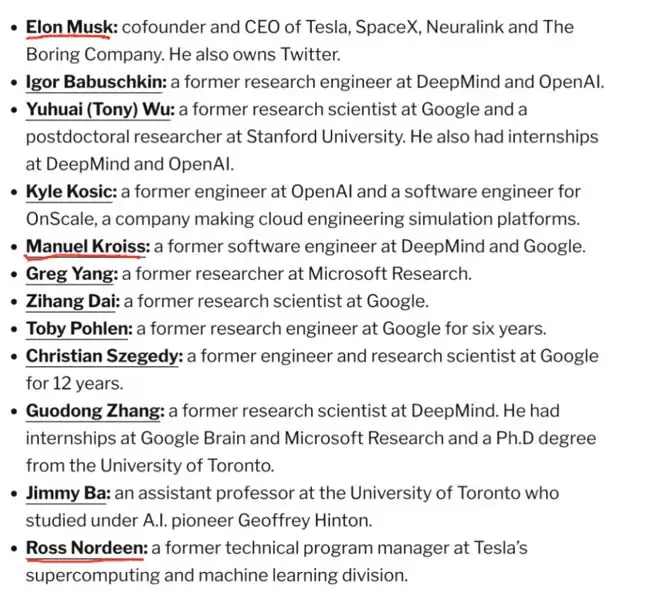 以上名单中,已确认离开的有:Igor Babuschkin、Yuhuai (Tony) Wu、Kyle Kosic、Greg Yang、Zihang Dai、Toby Pohlen、Christian Szegedy、Guodong Zhang和Jimmy Ba。