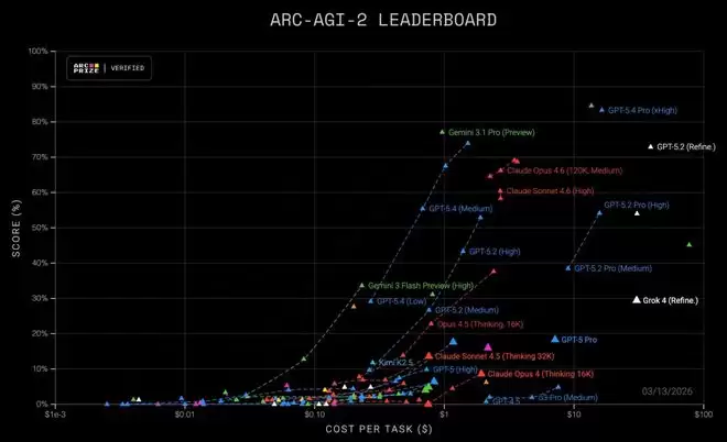 据Arc AGI显示,xAI在性能和成本方面均明显落后于谷歌、OpenAI和Anthropic。