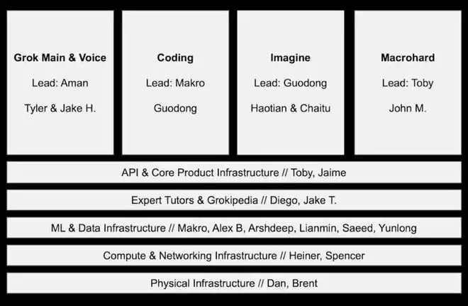 会上他宣布,xAI将重组为四支核心团队:Grok聊天机器人与语音产品;编程模型;Imagine多媒体生成;由AI智能体驱动的企业软件项目Macrohard。