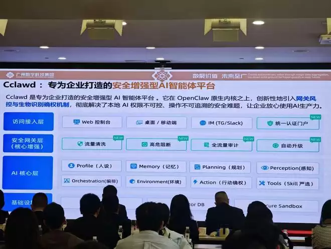3月13日,“数智护航 安全共赢”广州数字科技集团数字安全产业发展研讨会在广州举行。会上,广州数科集团通过数科产投引进的数字安全企业领信数科,发布了基于OpenClaw内核深度定制的企业级安全智能体Cclawd,其基于权威身份认证的插件安全机制为国内首发。