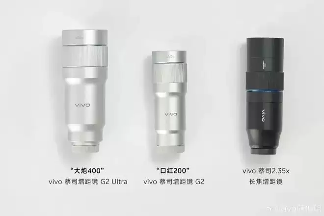 另外,vivo还将带来两款手机增距镜新品,分别为大炮 400 和口红 200。