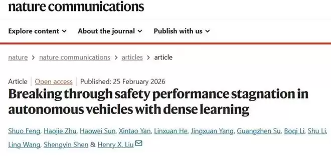 相关论文以《通过密集学习突破自动驾驶安全性能停滞瓶颈》(Breaking through safety performance stagnation in autonomous vehicles with dense learning)为题发表在 Nature Communications[1]。清华大学自动化系封硕副教授是第一作者,密西根大学刘向宏(Henry X. Liu)教授担任通讯作者。