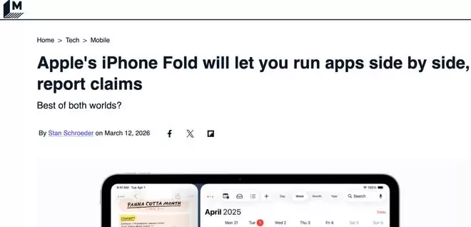 【环球网科技综合报道】据外媒mashable援引彭博社消息指出,苹果公司正加快其首款折叠屏设备“iPhone Fold”的研发进程。这款备受瞩目的产品预计将于今年晚些时候正式亮相,其核心战略并非单纯追求硬件形态的突破,而是致力于通过软件生态的深度优化,为用户提供类似iPad的多任务处理体验。