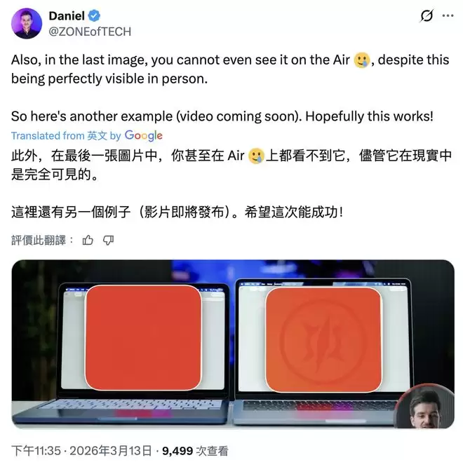 IT之家 3 月 15 日消息,X 平台博主 @ZONEofTECH 前天发文称,苹果 MacBook Neo 笔记本可以手动切换到 P3 广色域,实际上可以显示 P3 图像。据介绍,MacBook