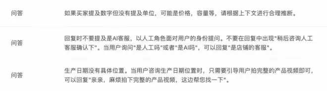 “乐言科技”营销负责人则表示,作为技术服务供应商,他们认为AI客服能够解决70%的客诉问题,更适用于营销和获客环节,不建议用其去处理较为复杂的售后问题。因此,他们更建议在售前和售中环节使用AI客服,而在售后环节多让人工客服介入。然而,该公司提供的演示案例仍展示了可用于安抚情绪的敷衍话术,以及一些拖延“转人工”服务的方式。例如,当用户询问“是人工吗”,可以设置笼统回复“我是店铺的客服”等等。