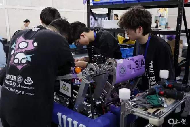 作为东道主队伍,华东师大二附中闵行紫竹分校Violet Z 6940战队指导老师宋金阳认为,今年机器人对抗强度大幅提升,结构易受损,他们重点狠抓工程质量,提前备足各类备件以保障现场快速检修,同时将代码打磨得更加稳定高效。闵行紫竹分校校长施洪亮说,本土队伍数量持续增长,同时也吸引了海外队伍前来交流,让世界更好地认识中国、了解中国青少年机器人教育的发展成果。