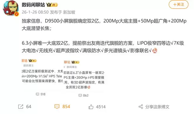 OPPO Find X9s Pro参数曝光:天玑9500芯片与双2亿镜头加持
