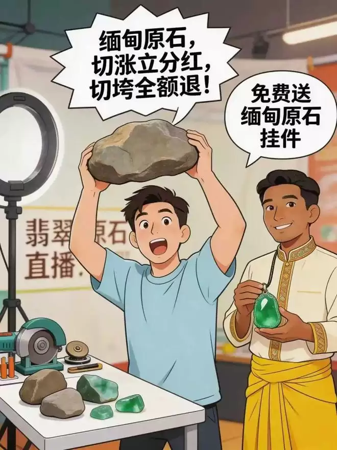 赌石交易中,若商家如实披露原石属性、交易双方自愿参与,且消费者对“赌石有风险、盈亏自担”有清晰认知,相关交易属于正常商业行为,风险由消费者自行承担。但如果直播商家虚构原石来源、伪造原石品质、控制切割结果,并用“切涨立分红、切垮全额退”等虚假承诺引诱群众参与,则可能构成诈骗犯罪。浦东新区检察院曾办理一起赌石直播案件,犯罪团伙利用上述手段共计骗取80余名被害人钱款人民币400余万元。